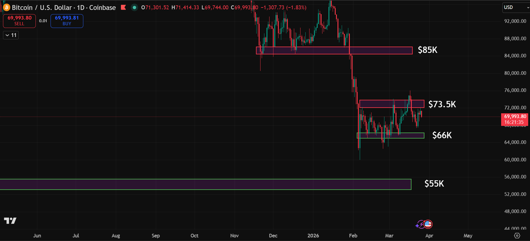 Resistance: $73.5K, $85K